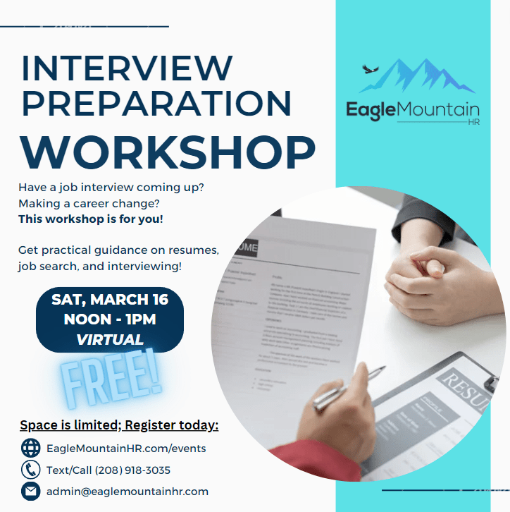 * A confirmation e-mail with instructions will be sent to the e-mail address provided within 48 hours. Please check junk or spam e-mail if you haven’t received a confirmation after 48 hours. Contact (208) 918-3035 or admin@eaglemountainhr.com for assistance. Successful registration may not be guaranteed for registrations received within two days prior to day of event, so please be sure to register as soon as possible. We look forward to helping you soar to success!
